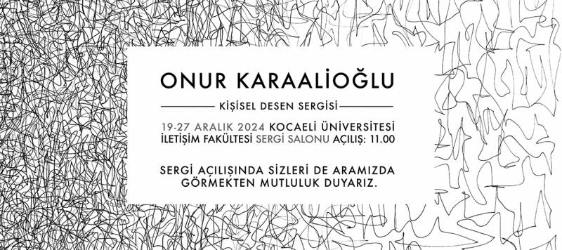 Onur Karaalioğlu’nun kişisel desen sergisi, 19 Aralık 2024 Perşembe günü saat 11.00’de Kocaeli Üniversitesi İletişim Fakültesi Sergi Salonu’nda açılıyor. Değerli katılımlarınızı bekleriz.