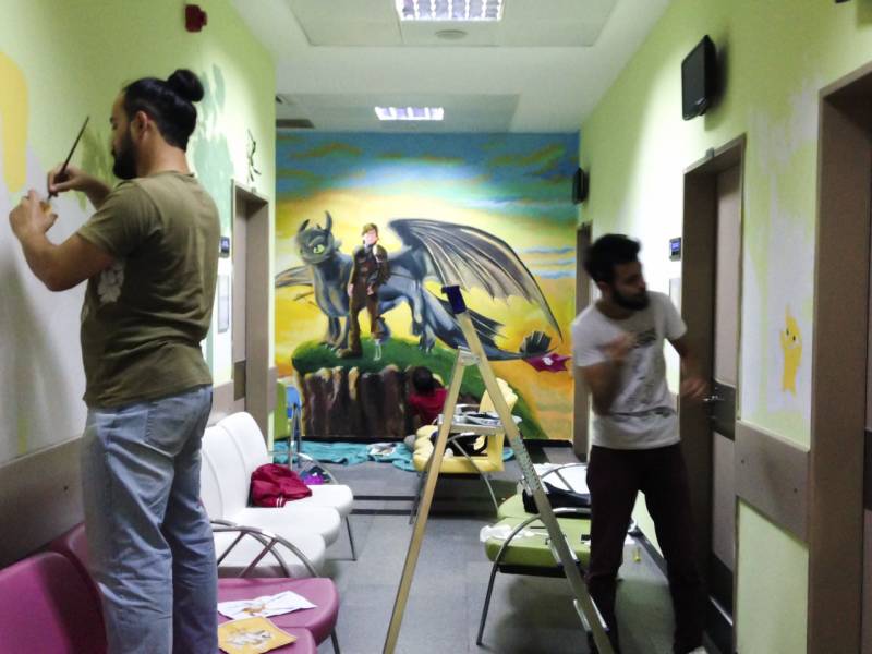 Sakarya Üniversitesi Sanat, Tasarım ve Mimarlık Fakültesi Resim Bölümü tarafından gerçekleştirilen Sakarya Eğitim ve Araştırma Hastanesi Çocuk Polikliniği'nin duvar resimleri projesi, 2 haftalık çalışmanın sonucunda, gönüllü öğrenci ve öğretim elemanlarının katılımıyla çocuklar için çok daha sempatik bir görünüme kavuşmuştur.